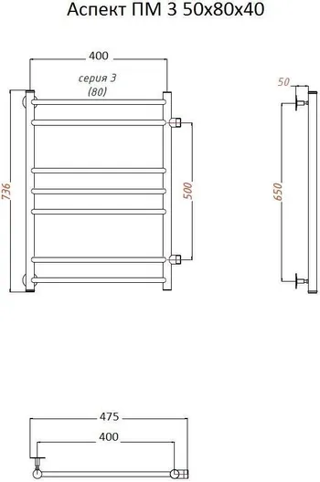 Полотенцесушитель водяной Тругор Аспект 3 50х80х40 боковое подключение