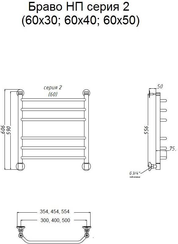 Полотенцесушитель водяной Тругор Браво 2 60х30 универсальное подключение