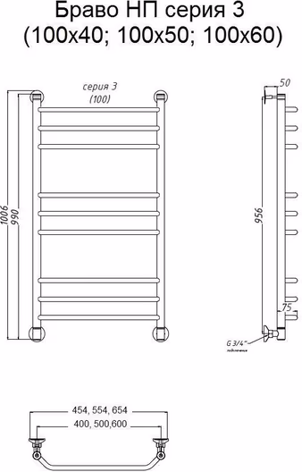Полотенцесушитель водяной Тругор Браво 3 100х50 универсальное подключение УТ-00088769