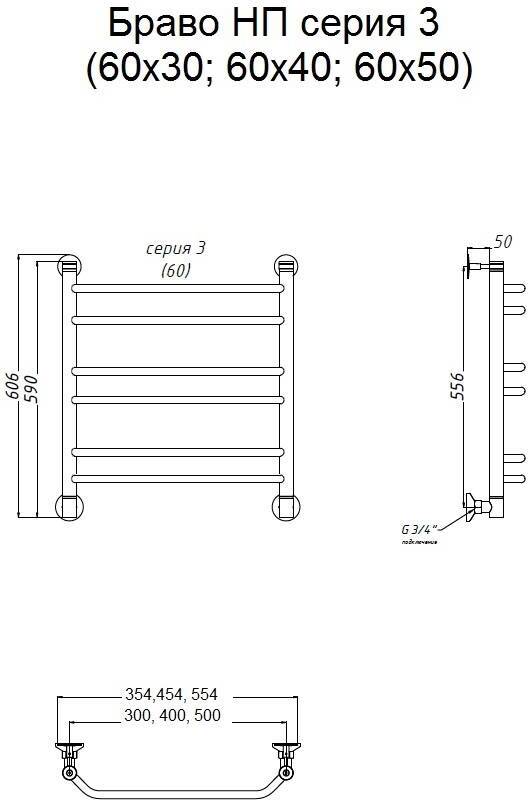 Полотенцесушитель водяной Тругор Браво 3 60х50 универсальное подключение