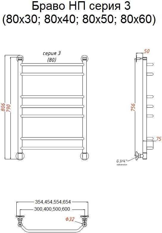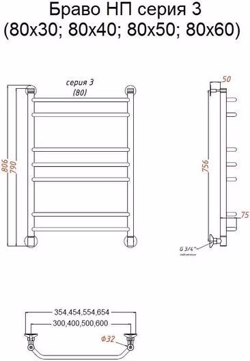 Полотенцесушитель водяной Тругор Браво 3 80х50 универсальное подключение