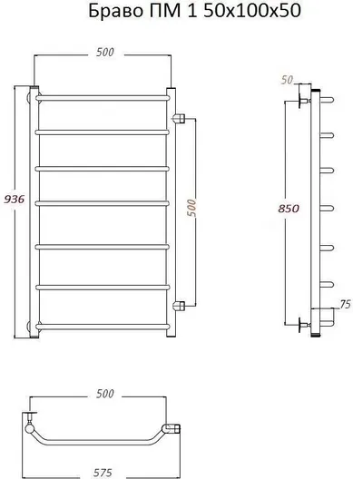 Полотенцесушитель водяной Тругор Браво 1 50*100*50 боковое подключение УТ-00088793
