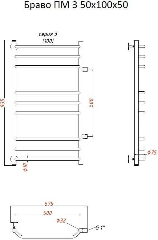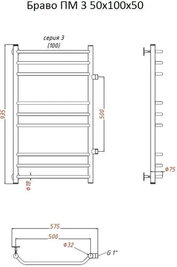 Полотенцесушитель водяной Тругор Браво 3 50х100х50 боковое подключение
