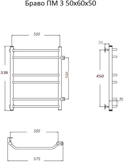 Полотенцесушитель водяной Тругор Браво 3 50х60х50 боковое подключение
