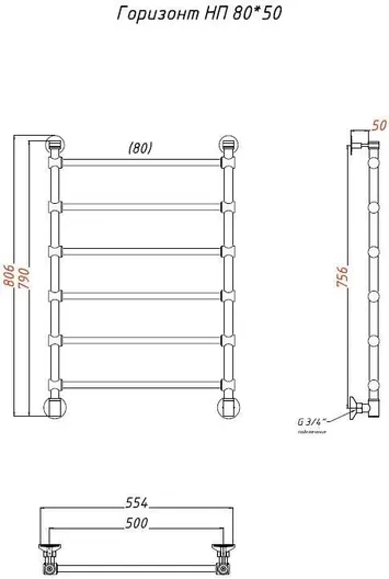 Полотенцесушитель водяной Тругор Горизонт 80х50 универсальное подключение