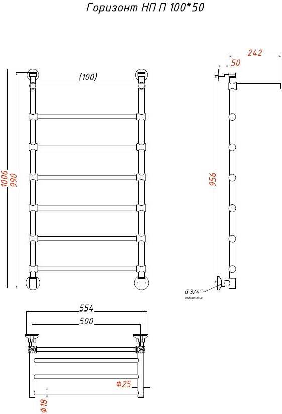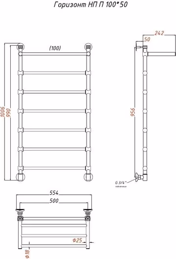 Полотенцесушитель водяной Тругор Горизонт 100х50 с полкой, универсальное подключение