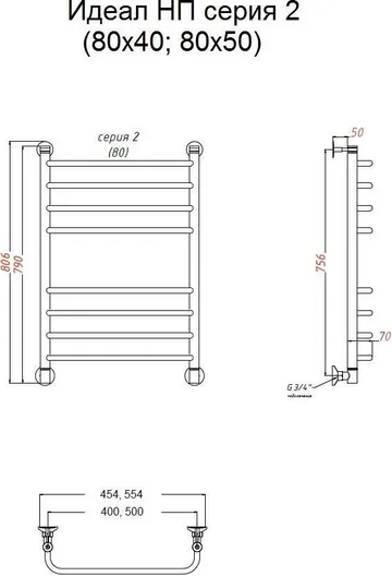 Полотенцесушитель водяной Тругор Идеал 2 80*40 универсальное подключение