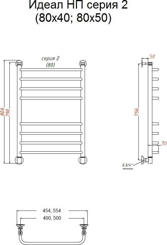 Полотенцесушитель водяной Тругор Идеал 2 80*50 универсальное подключение