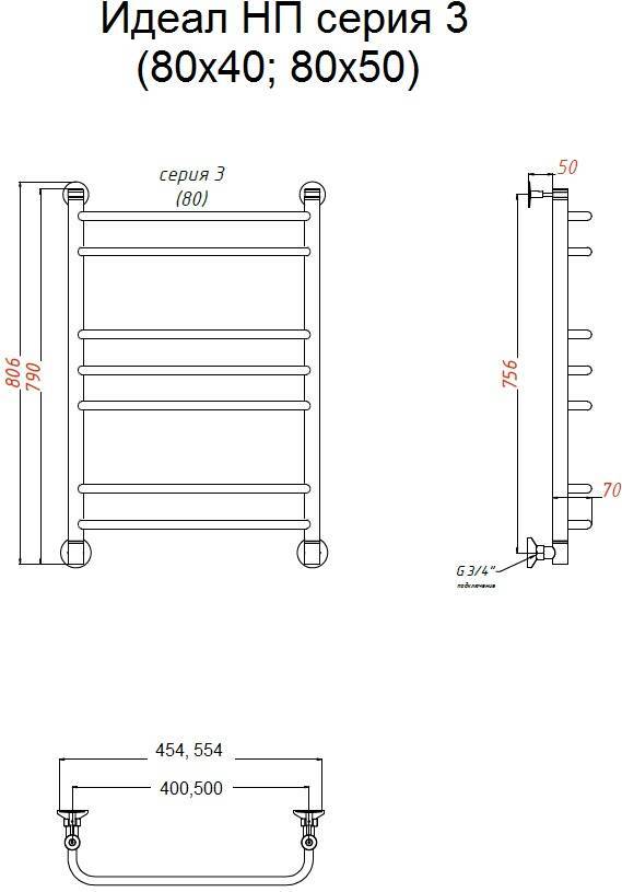 Полотенцесушитель водяной Тругор Идеал 3 80*40 универсальное подключение УТ-00088902