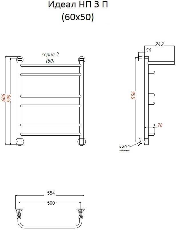 Полотенцесушитель водяной Тругор Идеал 3 60*50 универсальное подключение с полкой