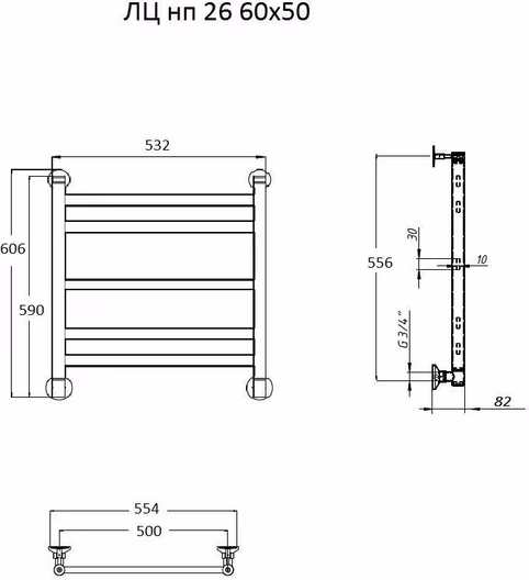 Полотенцесушитель водяной Тругор ЛЦ нп 26 60*50 универсальное подключение УТ-00088983