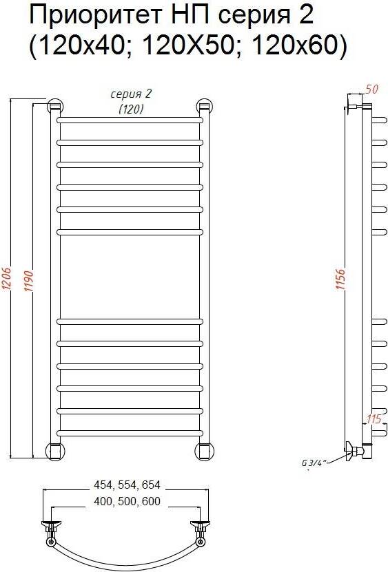 Полотенцесушитель водяной Тругор Приоритет 2 120*40 универсальное подключение УТ-00089017