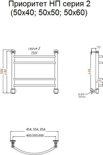 Полотенцесушитель водяной Тругор Приоритет 2 50*50 универсальное подключение