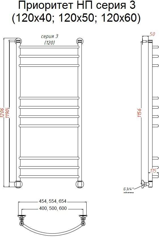 Полотенцесушитель водяной Тругор Приоритет 3 120*40 универсальное подключение УТ-00089037