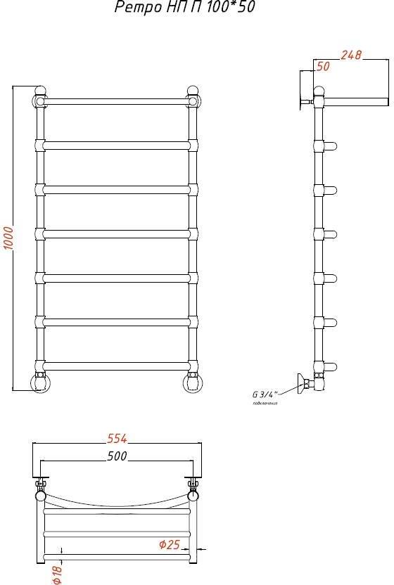 Полотенцесушитель водяной Тругор Ретро 100*50 универсальное подключение с полкой