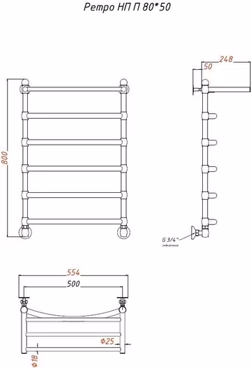 Полотенцесушитель водяной Тругор Ретро 80*50 универсальное подключение с полкой
