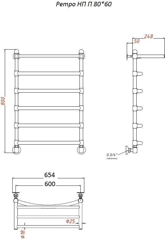 Полотенцесушитель водяной Тругор Ретро 80*60 универсальное подключение с полкой
