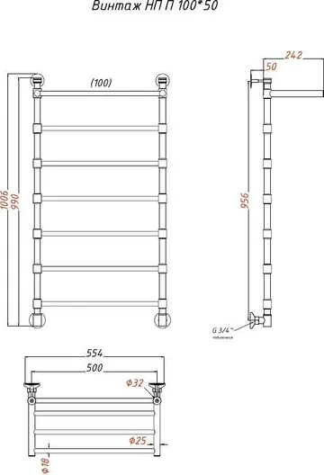 Полотенцесушитель водяной Тругор Винтаж 100х50 с полкой, универсальное подключение УТ-00088839