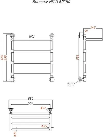 Полотенцесушитель водяной Тругор Винтаж 60х50 с полкой, универсальное подключение