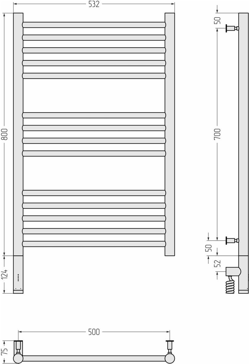 Полотенцесушитель электрический Сунержа Богема 3.0 80х50 МЭМ левый, Матовый чёрный УТ-00167857