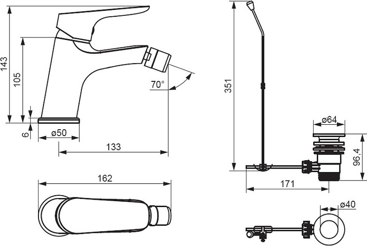 Смеситель Damixa Jupiter 770240000 для биде УТ-00160924