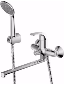 Смеситель может быть смонтирован на стене или на раковине. В случае установки на стене, требуется сверление отверстий для крепления. При установке на раковину, устройство крепится к раковине с помощью гайки и шлангов.
