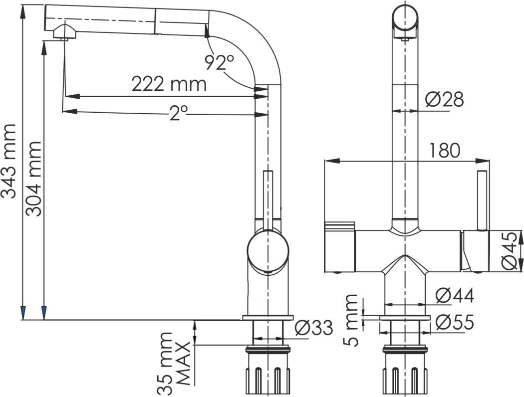 - Двухфункциональный выдвижной шланг 1500 мм с отдельными выводом под фильтрованную воду