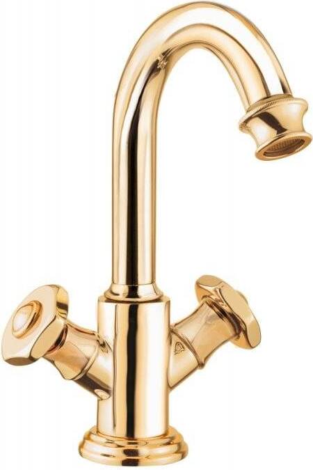 Смеситель Cezares APHRODITE APHRODITE-LS2-03/24-S1, на раковину с донным клапаном, Золото 24 карат, ручки Металл