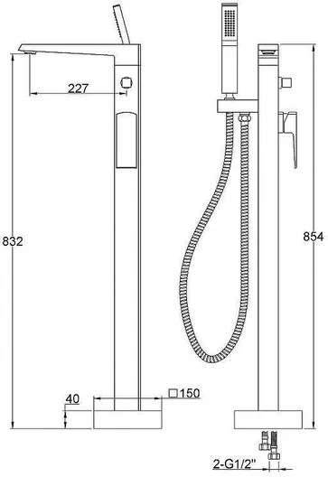 - душевая лейка, держатель душевой лейки, душевой шланг, смеситель