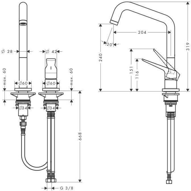 - Длина излива, см:20.4