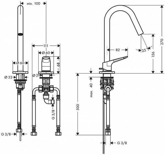 - Высота излива, см: