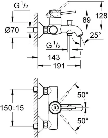Смеситель Grohe BauClassic 32865000 для ванны с душем СТ031751