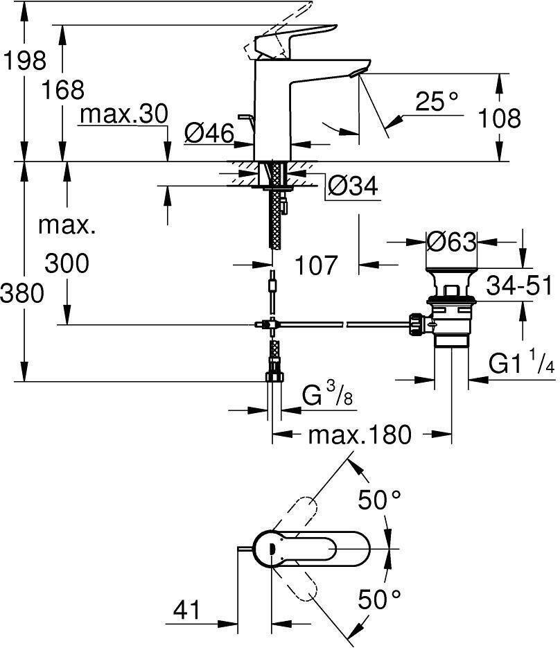 Смеситель Grohe BauEdge 23758000, для раковины, сливной гарнитур, M-Size УТ-00023245