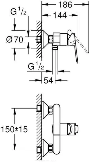 Смеситель Grohe BauEdge 23636000, для душа, однорычажный, LongLife 35мм