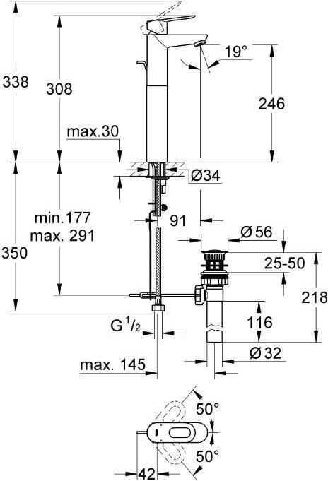 - Высота излива, см: