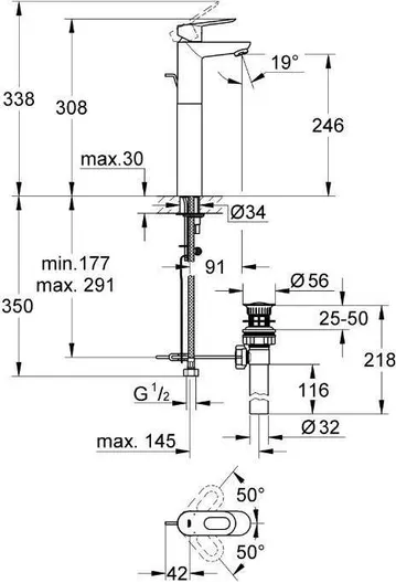 Смеситель для раковины GROHE BauLoop 32856000 с донным клапаном, свободностоящий, хром СТ041958