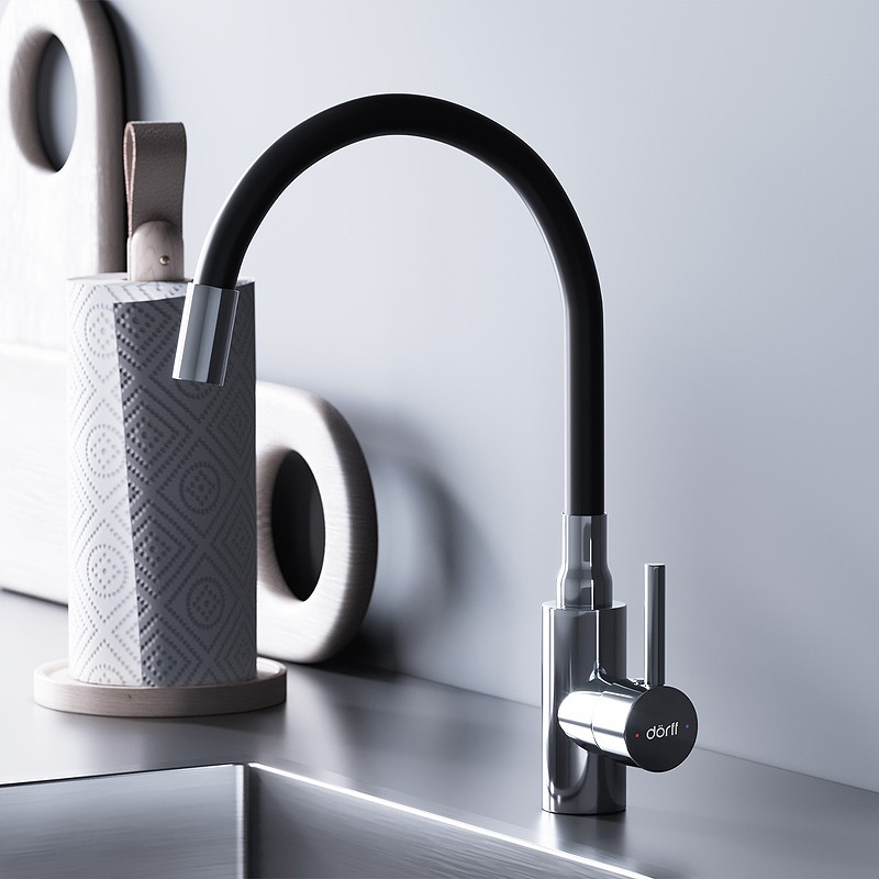Смеситель Dorff Logic D3007622 для кухонной мойки хром-черный