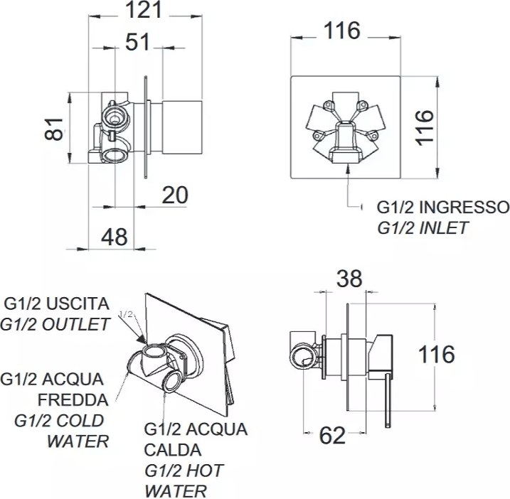 Переключатель потоков Remer Qubica Q93DEV3 для душа, на 3 потребителя УТ-00151357