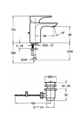 - Смеситель - 1шт. Донный клапан - 1шт. Инструкция - 1шт