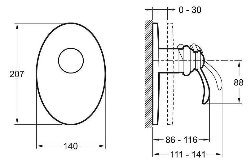 Встраиваемый смеситель, однорычажный, 1 выход.