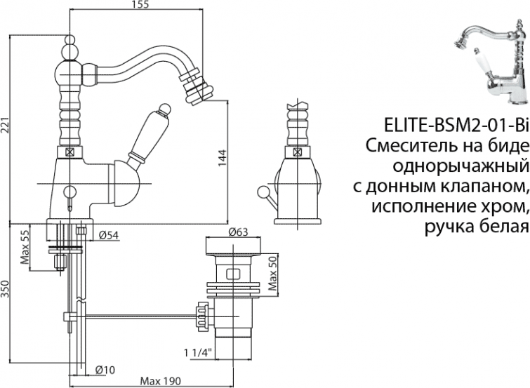 Смеситель Cezares Elite ELITE-BSM2-03-Bi для биде УТ-00069196