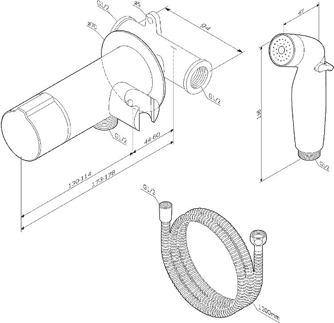- гигиенический душ, душевой шланг, смеситель