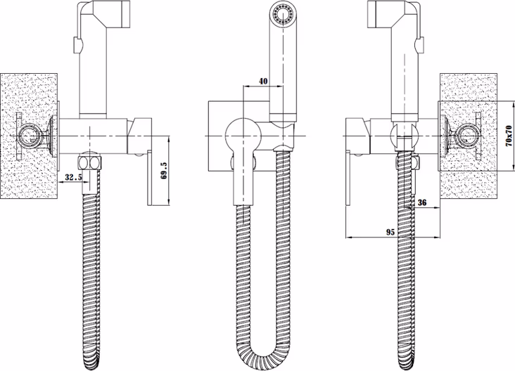 - гигиенический душ, держатель душевой лейки, душевой шланг, смеситель