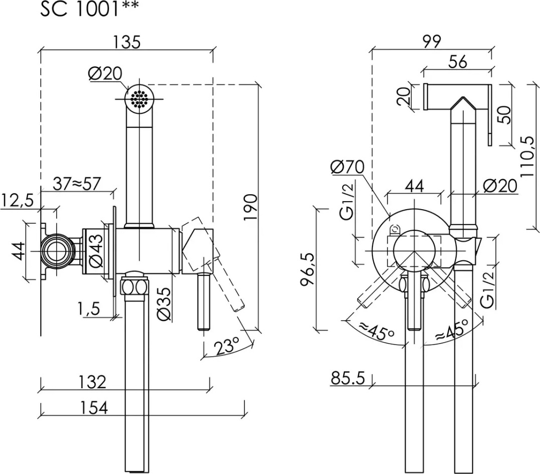 Смеситель с гигиеническим душем Sancos Start SC1001CH хром глянцевый