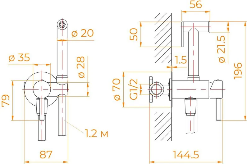 - гигиенический душ, держатель душевой лейки, душевой шланг, смеситель