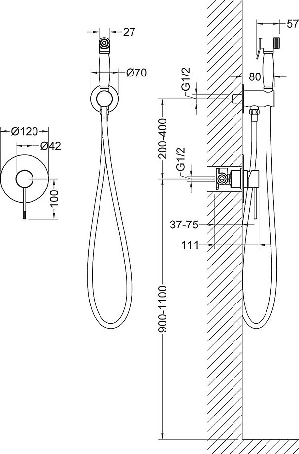 - шланговое подключение, гигиенический душ, смеситель