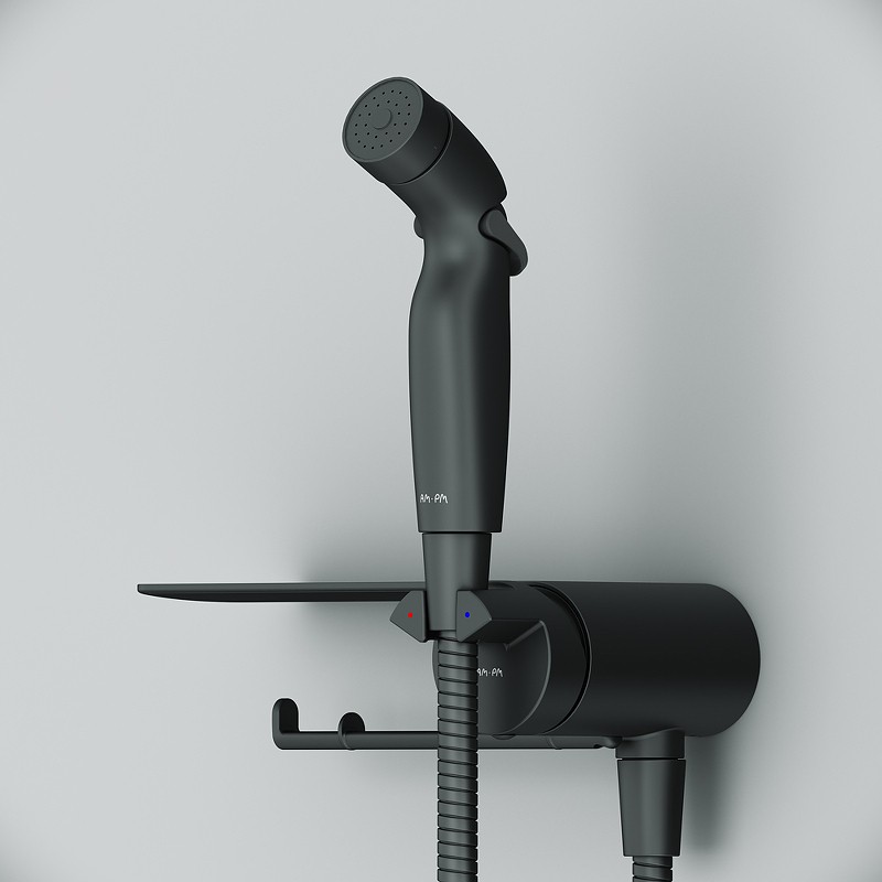 Смеситель с гигиеническим душем Am.Pm Func F0H8F922 с полкой, черный УТ-00154998