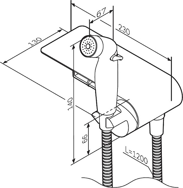 - полочка, гигиенический душ, душевой шланг, смеситель