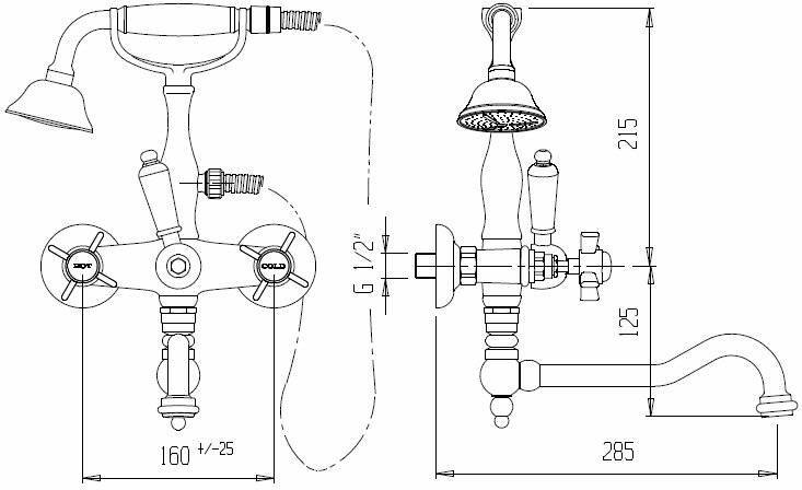 Смеситель для ванны Cezares GOLF, GOLF–VDF-01-Bi с ручным душем,хром, ручки белые