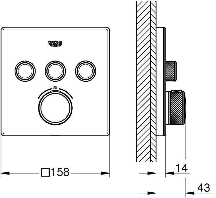 Встраиваемый элегантный термостат обладает необычным цветом «белая луна». На виду остается только небольшая металлическая панель с тремя кнопками SmartControl и регулятор температуры воды. При нажатии «умных» кнопок происходит включение/выключение воды в выбранном устройстве – ручном, верхнем душе или изливе для ванны, их поворот регулирует напор от минимального водосберегающего EcoJoy до максимального. Благодаря фирменной технологии GROHE TurboStat® будет обеспечена подача воды заданной температуры, а стопор безопасности, останавливающий поток при повышении температуры выше 38 °С, поможет уберечься от внезапного ошпаривания. Металлические элементы термостата выполнены из латуни – материала, стойкого к воздействию коррозии. Фирменное хромированное покрытие GROHE StarLight® не тускнеет со временем и сохранит безупречный блеск на долгие годы.
